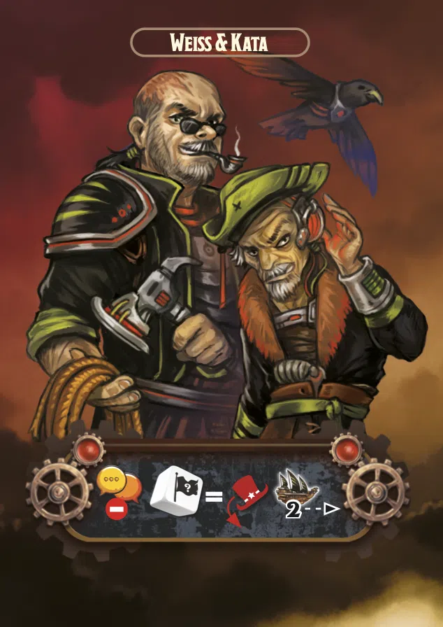 - Face Embuscade : Pour chaque face pirate visible, engagez, si possible, un Équipage, puis le vaisseau pirate avance de 2 cases.