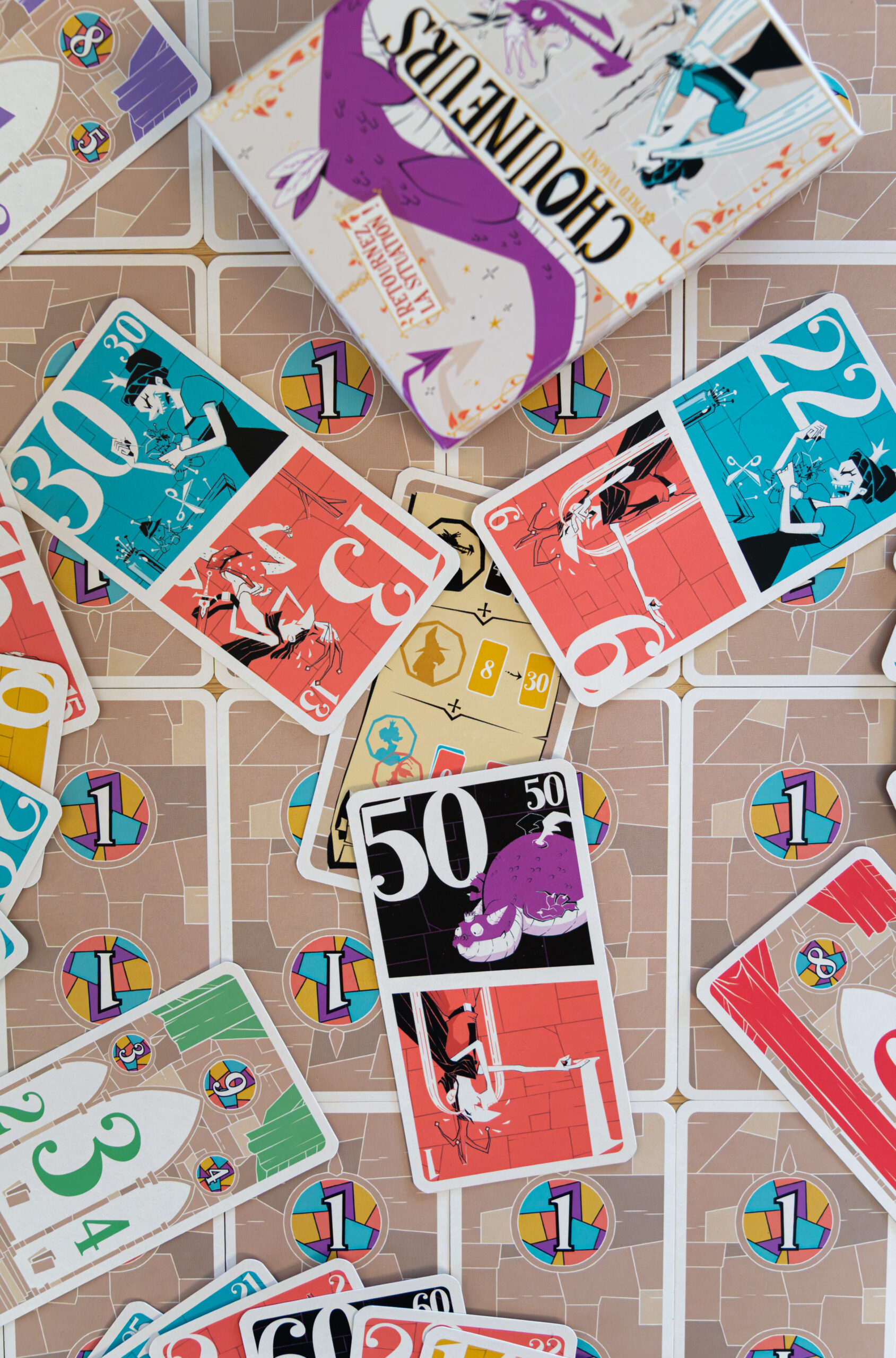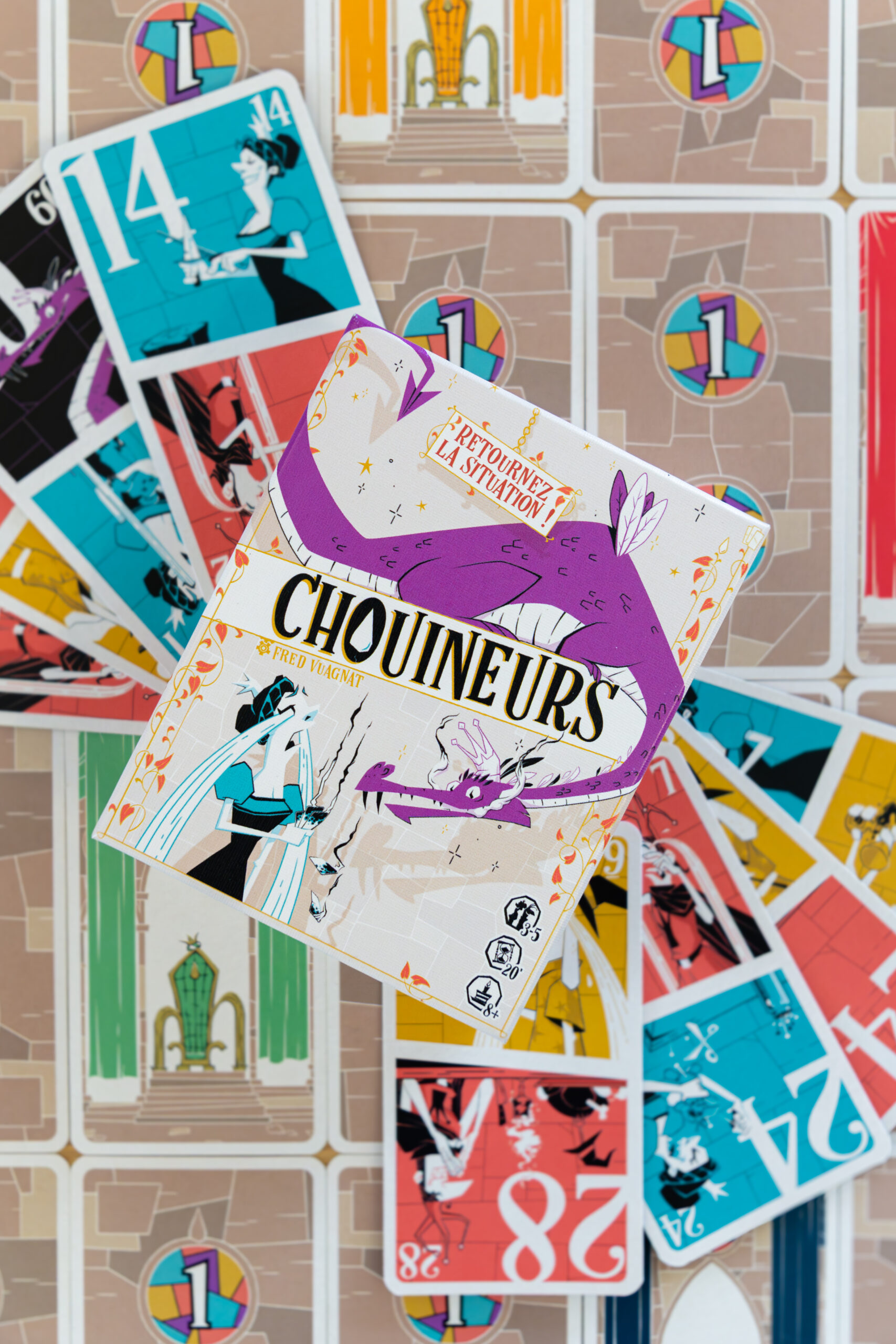 Chouineurs est un jeu de plis. Au début de chacune des quatre manches, vous pariez sur le nombre de plis que vous pensez remporter. Plus vous vous approchez de votre pari, plus vous marquez de points. Mais si les choses ne se déroulent pas comme prévu ? Alors…