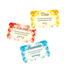 Piochez des images et des mots puis composez judicieusement votre grille en trouvant les liens qui les unissent. Faites preuve d’observation, de créativité, et saisissez l’opportunité de jouer au bon moment afin d’obtenir la meilleure harmonie possible !